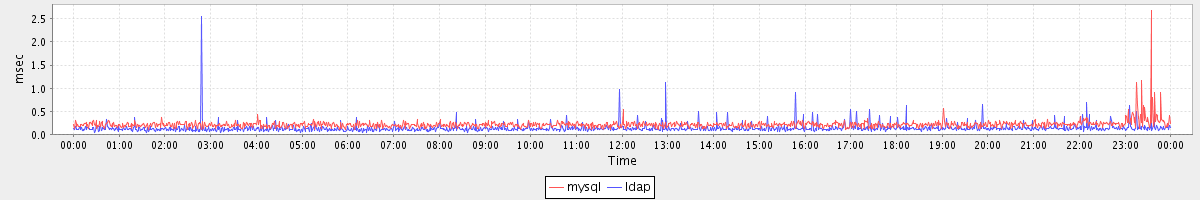 avg(mysql) = 0.22 avg(ldap) = 0.13
