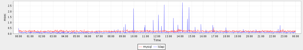 avg(mysql) = 0.21 avg(ldap) = 0.11