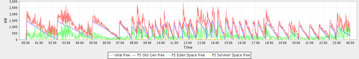 avg(total free) = 1012.82 avg(PS Old Gen free) = 696.32 avg(PS Eden Space free) = 308.41 avg(PS Survivor Space free) = 8.10