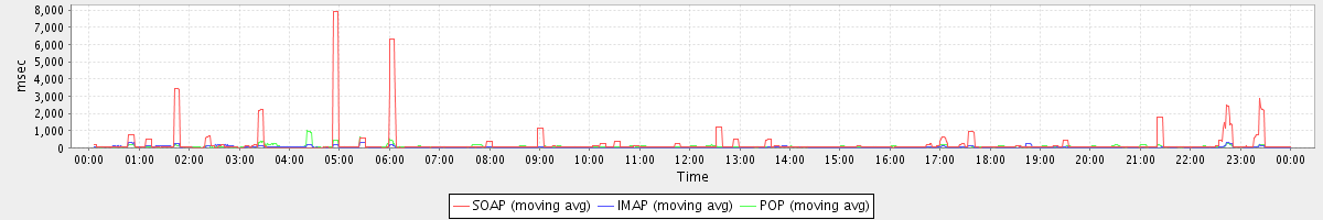 Host zm07.stanford.edu: Mailboxd: Response Time by Client Protocol