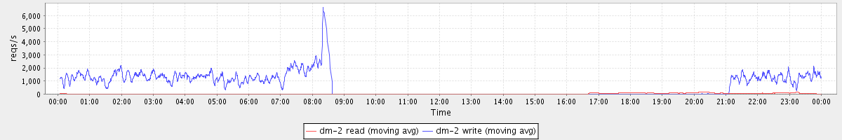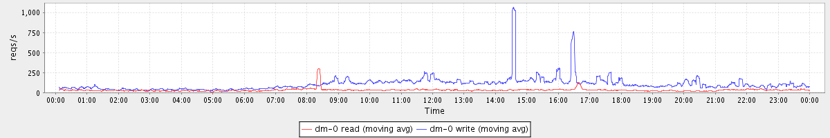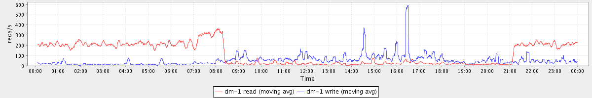 avg(dm-1 read) = 2730.99 avg(dm-1 write) = 214.91
