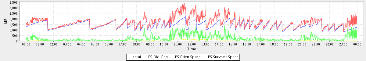 avg(total free) = 715.07 avg(PS Old Gen free) = 460.80 avg(PS Eden Space free) = 241.00 avg(PS Survivor Space free) = 13.27