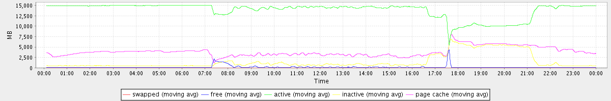 avg(swapped) = 11.17 avg(free) = 158.96 avg(active) = 13841.06 avg(inactive) = 1517.10 avg(page cache) = 3850.59