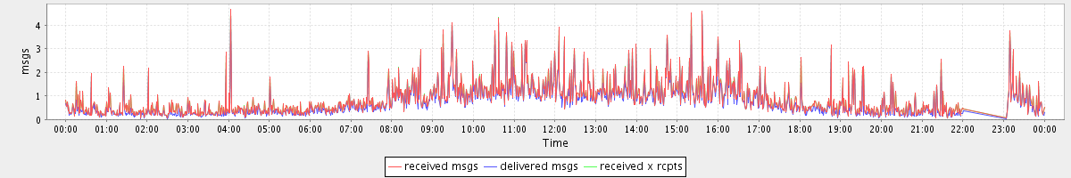 avg(received msgs) = 0.87 avg(delivered msgs) = 0.76 avg(received x rcpts) = 0.87