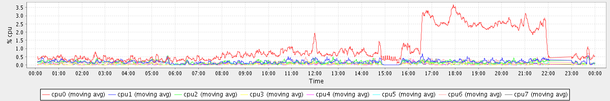 avg(cpu0) = 1.02 avg(cpu1) = 0.18 avg(cpu2) = 0.15 avg(cpu3) = 0.06 avg(cpu4) = 0.04 avg(cpu5) = 0.05 avg(cpu6) = 0.13 avg(cpu7) = 0.05