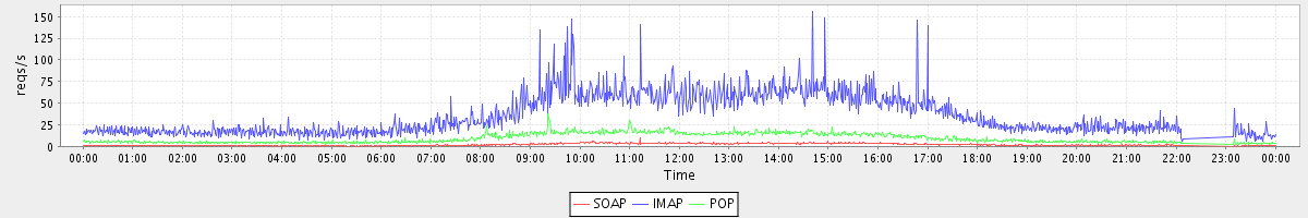Host zm07.stanford.edu: Mailboxd: Request Rate by Client Protocol