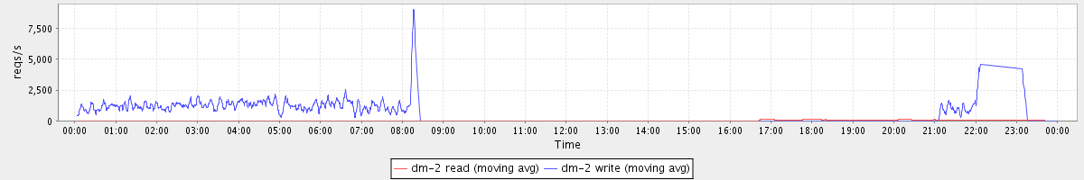avg(dm-2 read) = 20.50 avg(dm-2 write) = 536.65