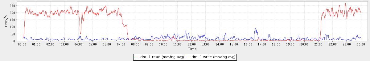 avg(dm-1 read) = 2201.63 avg(dm-1 write) = 68.22
