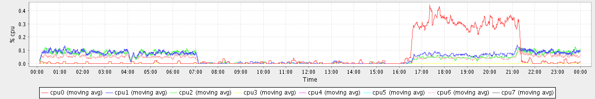 avg(cpu0) = 0.07 avg(cpu1) = 0.05 avg(cpu2) = 0.04 avg(cpu3) = 0.00 avg(cpu4) = 0.00 avg(cpu5) = 0.00 avg(cpu6) = 0.03 avg(cpu7) = 0.00