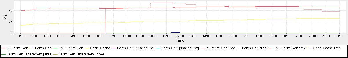 avg(PS Perm Gen) = 57.13 avg(Perm Gen) = 0.00 avg(CMS Perm Gen) = 0.00 avg(Code Cache) = 26.53 avg(Perm Gen [shared-ro]) = 0.00 avg(Perm Gen [shared-rw]) = 0.00 avg(PS Perm Gen free) = 42.39 avg(Perm Gen free) = 0.00 avg(CMS Perm Gen free) = 0.00 avg(Code Cache free) = 0.09 avg(Perm Gen [shared-ro] free) = 0.00 avg(Perm Gen [shared-rw] free) = 0.00