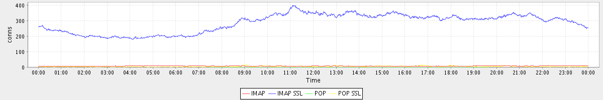 Host zm05.stanford.edu: Mailboxd: Active Connections by Client Protocol