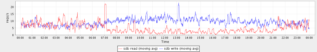 avg(sda1 read) = 21.34 avg(sda1 write) = 44.06