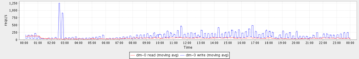 avg(dm-1 read) = 3037.24 avg(dm-1 write) = 377.04