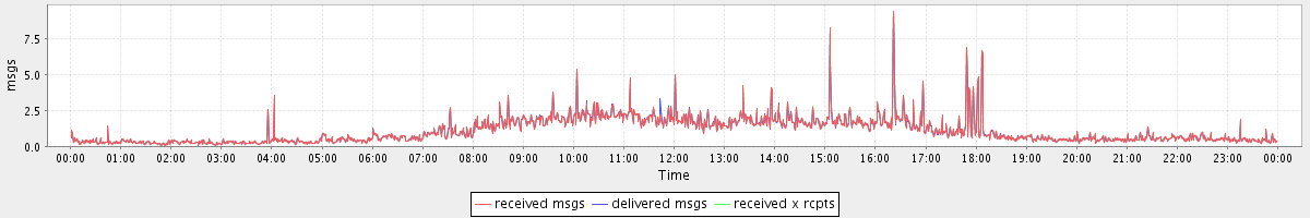 avg(received msgs) = 1.07 avg(delivered msgs) = 1.07 avg(received x rcpts) = 1.08