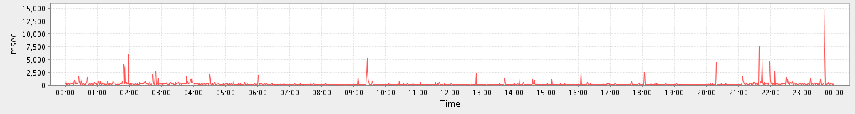 avg(SyncGalRequest) = 5660.64 avg(GetFreeBusyRequest) = 2878.68 avg(SearchGalRequest) = 710.22 avg(BackupRequest) = 606939.00 avg(FolderActionRequest.empty) = 15066.45 avg(FolderActionRequest.sync) = 6913.00 avg(BackupQueryRequest) = 1194.20 avg(GetMiniCalRequest) = 755.55 avg(GetQuotaUsageRequest) = 2891.00 avg(ConvActionRequest.delete) = 1059.19