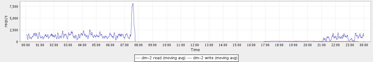 avg(dm-2 read) = 21.72 avg(dm-2 write) = 543.55