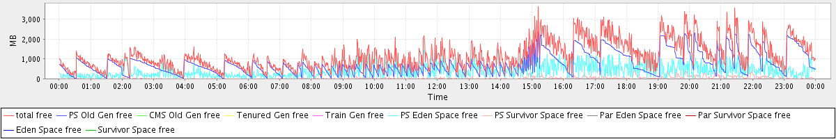 avg(total free) = 1169.89 avg(PS Old Gen free) = 728.70 avg(CMS Old Gen free) = 0.00 avg(Tenured Gen free) = 0.00 avg(Train Gen free) = 0.00 avg(PS Eden Space free) = 406.22 avg(PS Survivor Space free) = 34.97 avg(Par Eden Space free) = 0.00 avg(Par Survivor Space free) = 0.00 avg(Eden Space free) = 0.00 avg(Survivor Space free) = 0.00