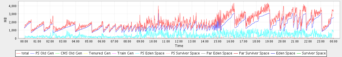 avg(total) = 1998.56 avg(PS Old Gen) = 1560.27 avg(CMS Old Gen) = 0.00 avg(Tenured Gen) = 0.00 avg(Train Gen) = 0.00 avg(PS Eden Space) = 391.25 avg(PS Survivor Space) = 47.05 avg(Par Eden Space) = 0.00 avg(Par Survivor Space) = 0.00 avg(Eden Space) = 0.00 avg(Survivor Space) = 0.00