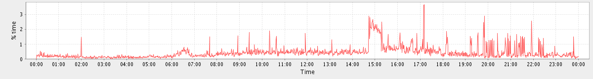 avg(user) = 9.96 avg(sys) = 1.72 avg(idle) = 77.57 avg(iowait) = 10.27 avg(nice) = 0.00 avg(irq) = 0.04 avg(softirq) = 0.43