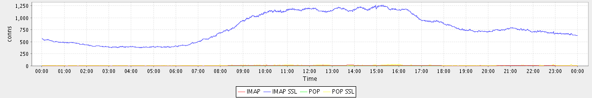 avg(IMAP) = 5.40 avg(IMAP SSL) = 786.49 avg(POP) = 0.09 avg(POP SSL) = 8.53