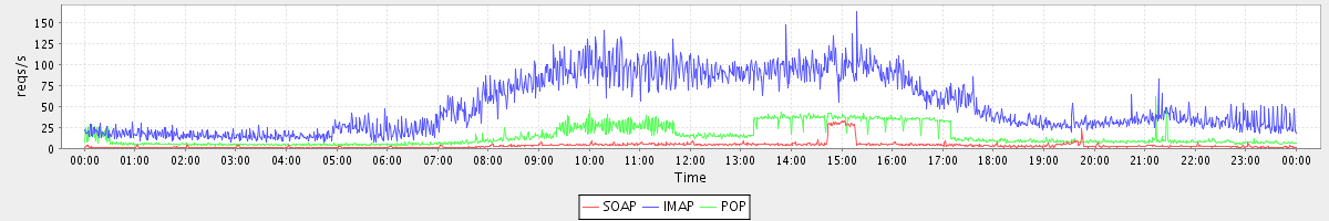 Host zm08.stanford.edu: Mailboxd: Request Rate by Client Protocol