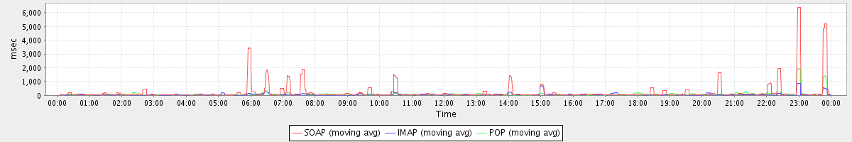 Host zm08.stanford.edu: Mailboxd: Response Time by Client Protocol