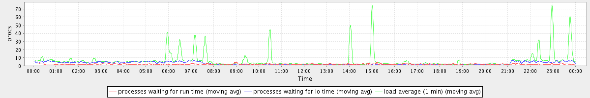 avg(processes waiting for run time) = 1.06 avg(processes waiting for io time) = 2.56 avg(load average (1 min)) = 6.39