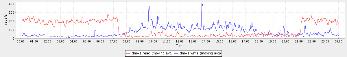 avg(dm-1 read) = 2355.28 avg(dm-1 write) = 305.03