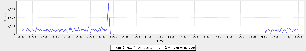 avg(dm-2 read) = 21.70 avg(dm-2 write) = 565.17