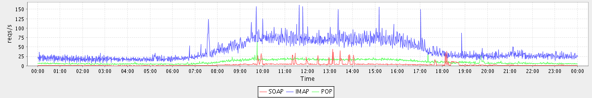 Host zm07.stanford.edu: Mailboxd: Request Rate by Client Protocol