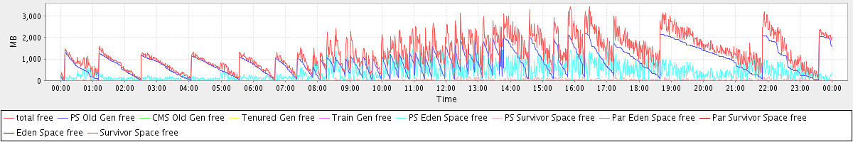 avg(total free) = 1293.95 avg(PS Old Gen free) = 870.22 avg(CMS Old Gen free) = 0.00 avg(Tenured Gen free) = 0.00 avg(Train Gen free) = 0.00 avg(PS Eden Space free) = 399.74 avg(PS Survivor Space free) = 23.99 avg(Par Eden Space free) = 0.00 avg(Par Survivor Space free) = 0.00 avg(Eden Space free) = 0.00 avg(Survivor Space free) = 0.00