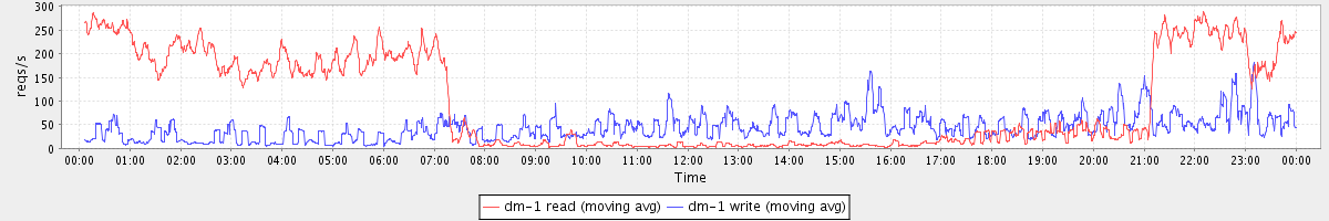 avg(dm-1 read) = 2184.72 avg(dm-1 write) = 178.59
