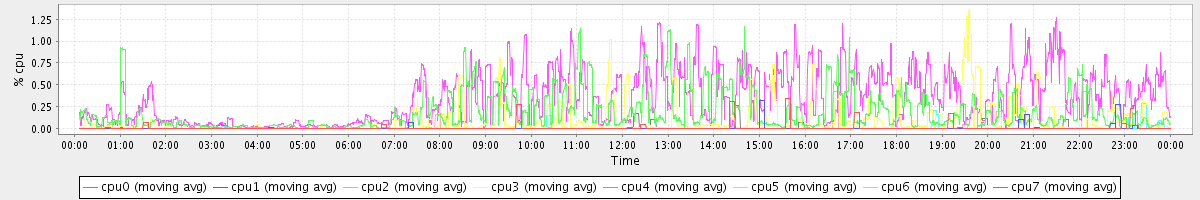 avg(cpu0) = 0.01 avg(cpu1) = 0.01 avg(cpu2) = 0.18 avg(cpu3) = 0.10 avg(cpu4) = 0.35 avg(cpu5) = 0.00 avg(cpu6) = 0.01 avg(cpu7) = 0.00