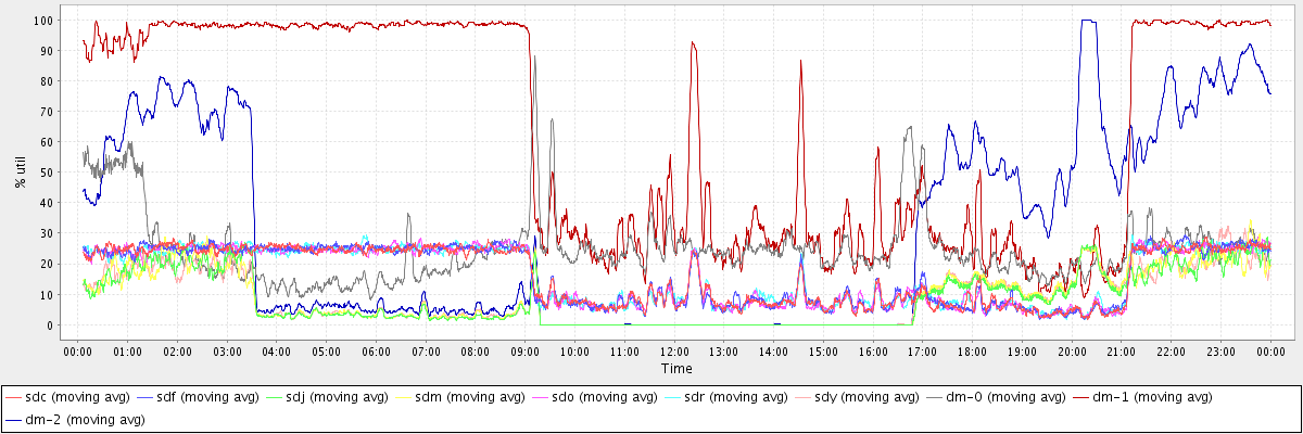 avg(sdc) = 16.13 avg(sdf) = 16.25 avg(sdj) = 8.43 avg(sdm) = 8.69 avg(sdo) = 16.13 avg(sdr) = 16.18 avg(sdy) = 8.72 avg(dm-0) = 24.79 avg(dm-1) = 63.22 avg(dm-2) = 29.88