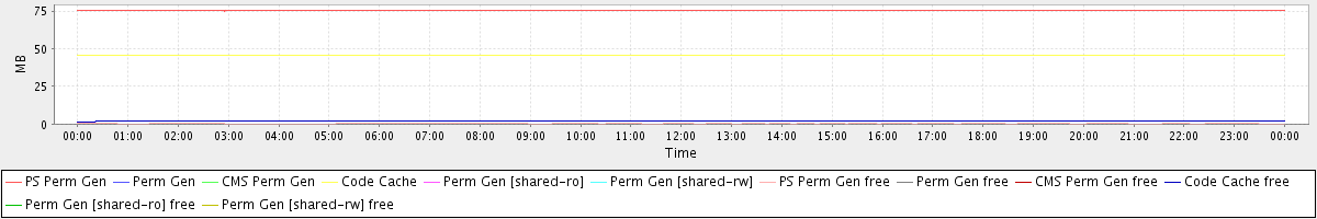 avg(PS Perm Gen) = 75.23 avg(Perm Gen) = 0.00 avg(CMS Perm Gen) = 0.00 avg(Code Cache) = 45.68 avg(Perm Gen [shared-ro]) = 0.00 avg(Perm Gen [shared-rw]) = 0.00 avg(PS Perm Gen free) = 0.30 avg(Perm Gen free) = 0.00 avg(CMS Perm Gen free) = 0.00 avg(Code Cache free) = 1.88 avg(Perm Gen [shared-ro] free) = 0.00 avg(Perm Gen [shared-rw] free) = 0.00