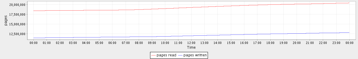 avg(pages read) = 19318635.62 avg(pages written) = 12071243.39