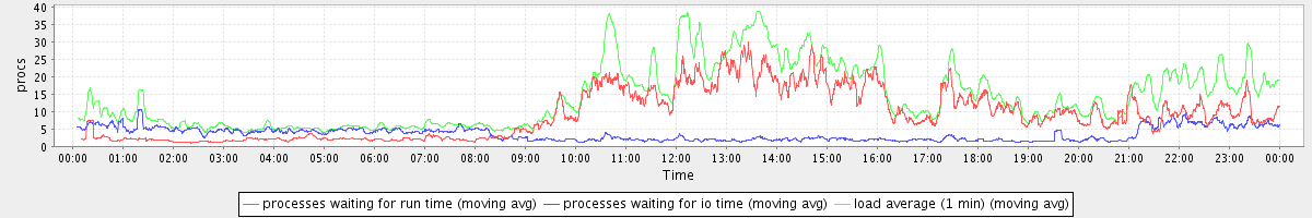 avg(processes waiting for run time) = 8.82 avg(processes waiting for io time) = 3.22 avg(load average (1 min)) = 14.12