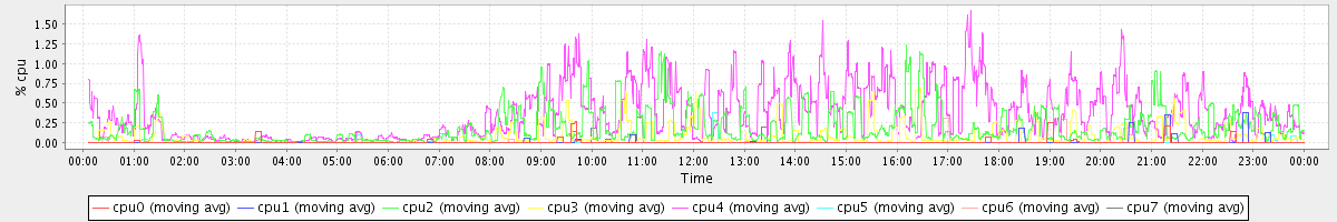avg(cpu0) = 0.01 avg(cpu1) = 0.01 avg(cpu2) = 0.19 avg(cpu3) = 0.07 avg(cpu4) = 0.36 avg(cpu5) = 0.00 avg(cpu6) = 0.01 avg(cpu7) = 0.00