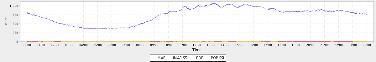 avg(IMAP) = 3.78 avg(IMAP SSL) = 740.08 avg(POP) = 0.00 avg(POP SSL) = 7.41