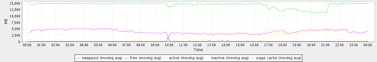 avg(swapped) = 11.13 avg(free) = 91.20 avg(active) = 14306.26 avg(inactive) = 1117.14 avg(page cache) = 3921.52