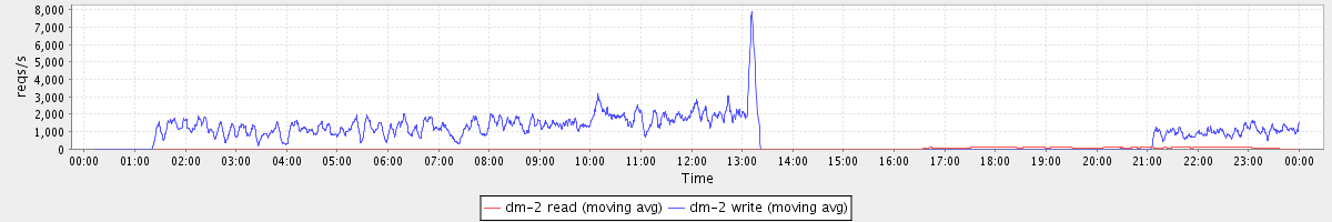 avg(dm-2 read) = 26.56 avg(dm-2 write) = 843.99