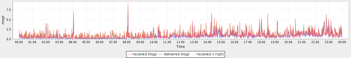 avg(received msgs) = 1.05 avg(delivered msgs) = 0.73 avg(received x rcpts) = 1.05