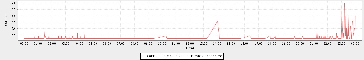avg(connection pool size) = 0.54 avg(threads connected) = 0.00