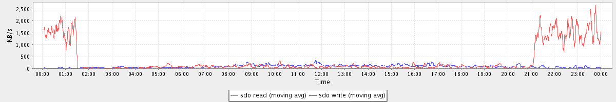 avg(sda2 read) = 0.39 avg(sda2 write) = 5.34