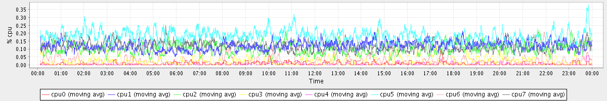 avg(cpu0) = 0.01 avg(cpu1) = 0.12 avg(cpu2) = 0.10 avg(cpu3) = 0.03 avg(cpu4) = 0.00 avg(cpu5) = 0.18 avg(cpu6) = 0.03 avg(cpu7) = 0.12
