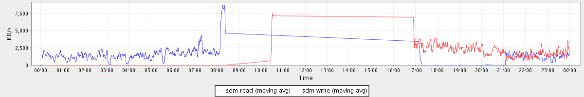 avg(sdb read) = 9.13 avg(sdb write) = 15.81