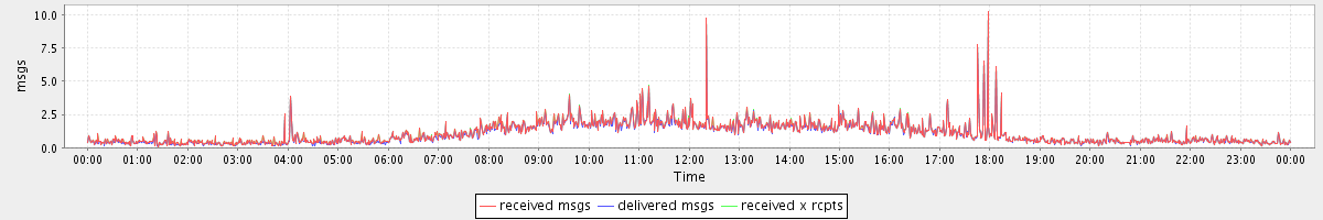 avg(received msgs) = 1.08 avg(delivered msgs) = 1.03 avg(received x rcpts) = 1.09