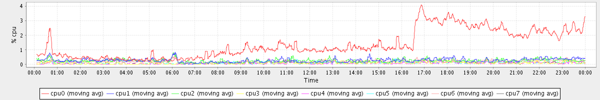 avg(cpu0) = 1.35 avg(cpu1) = 0.26 avg(cpu2) = 0.24 avg(cpu3) = 0.10 avg(cpu4) = 0.07 avg(cpu5) = 0.08 avg(cpu6) = 0.18 avg(cpu7) = 0.09