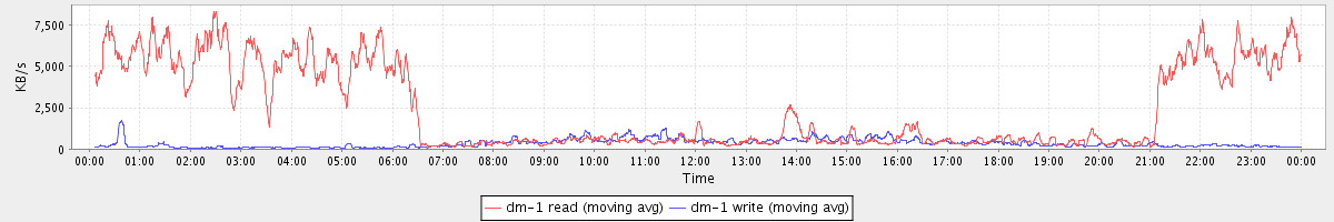 avg(dm-1 read) = 2452.59 avg(dm-1 write) = 344.21