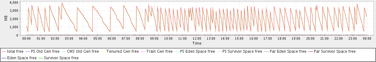 avg(total free) = 2024.01 avg(PS Old Gen free) = 0.00 avg(CMS Old Gen free) = 2003.27 avg(Tenured Gen free) = 0.00 avg(Train Gen free) = 0.00 avg(PS Eden Space free) = 0.00 avg(PS Survivor Space free) = 0.00 avg(Par Eden Space free) = 20.67 avg(Par Survivor Space free) = 0.06 avg(Eden Space free) = 0.00 avg(Survivor Space free) = 0.00